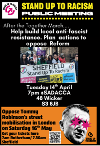 Launch of Stop Reform campaign Tuesday 14th April: 28th March was a great day, but we need to Stop Reform UK in the local elections – that’s why we have the launch of our election Campaign on Tuesday at SADACCA. Please come along and let us press our advantage.