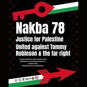 If you can’t go to London, there will be our usual Nakba Vigil outside the Town Hall at 12 noon In the face of the outrageous criminal convictions of PSC Director and Stop the War Deputy Director, the continuing arrests for standing against the proscription of Palestine Action and, most importantly, the continuing support by the UK Govt, for Israel’s genocidal Government, we must make this March bigger than ever!